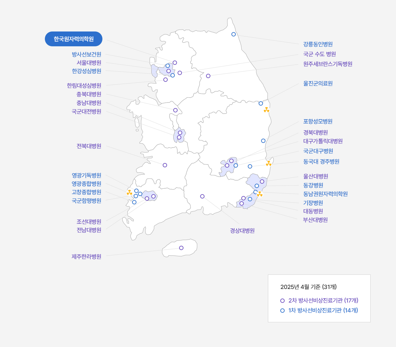 | 계 | - 1차 방사선비상진료기관(14개) - 2차 방사선비상진료기관(17개) |