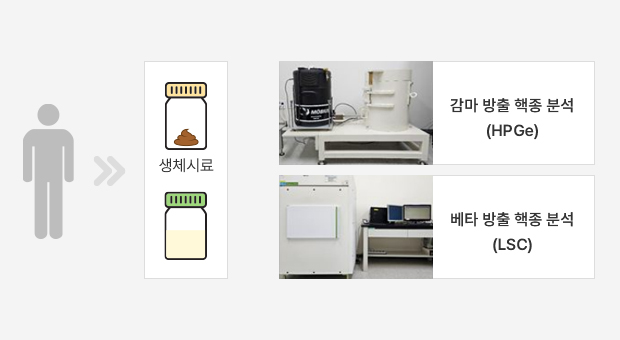 소변, 혈액 등 생체시료 내 방사성 물질 농도를 분석하여 체내 흡수된 방사성 물질 양 추정
