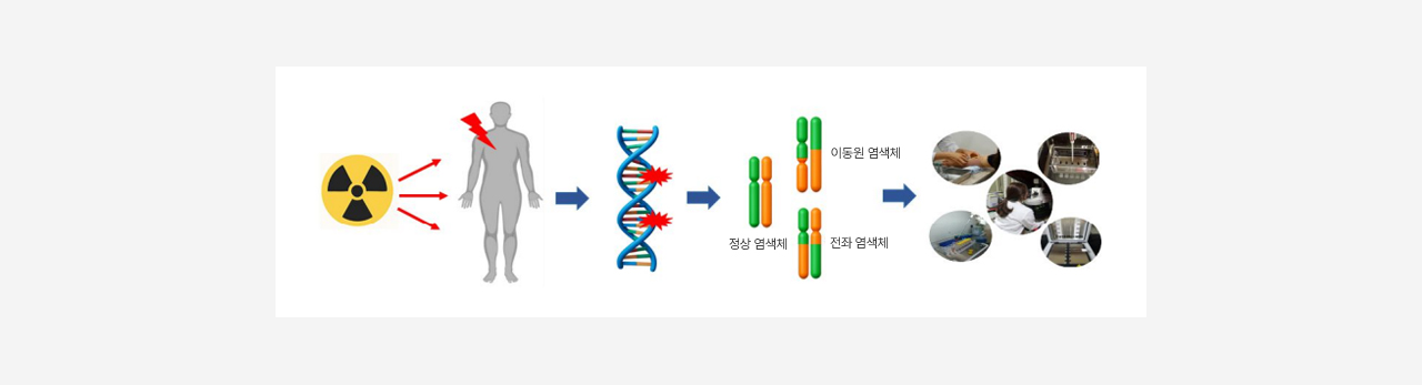 방사선에 노출된 세포 DNA의 손상된 정도를 염색체 분석을 통해 평가하여 피폭선량을 추정하는 검사입니다.